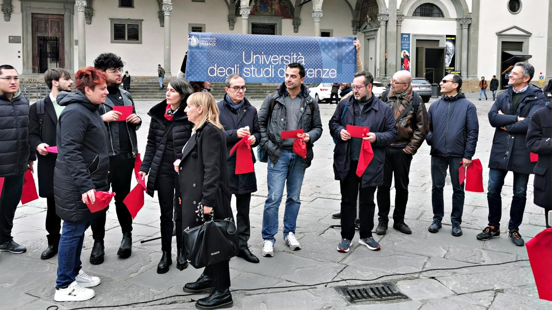 Firenze, un’azione simbolica con 150 tra ricercatrici, docenti, dipendenti e studentesse dell’Ateneo fiorentino in occasione della Giornata internazionale per l’eliminazione della violenza contro le donne.