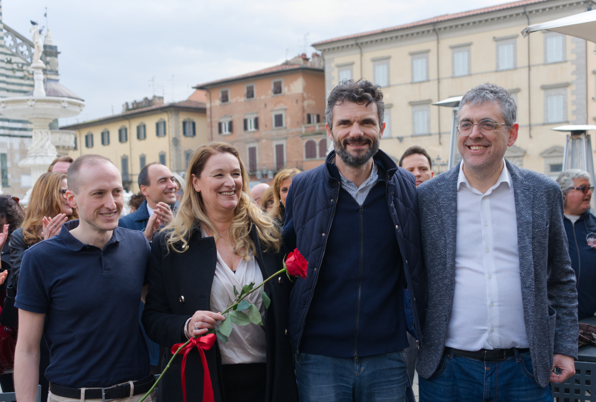 All’appuntamento che si è svolto in piazza Duomo hanno partecipato tra gli altri anche il deputato Marco Furfaro (Pd), il sindaco uscente Matteo Biffoni e il vicesindaco Simone Faggi, destinato allo stesso ruolo in giunta qualora Bugetti vincesse elezioni. Bugetti conta su una coalizione inedita in città, in discontinuità politica rispetto all’era di Biffoni: oltre al Pd fanno infatti parte dell’alleanza che si presenta alle urne anche il Movimento 5 Stelle e il tandem Verdi-Sinistra Italiana, mentre l’attuale maggioranza cittadina è composta da Pd e Italia Viva.
