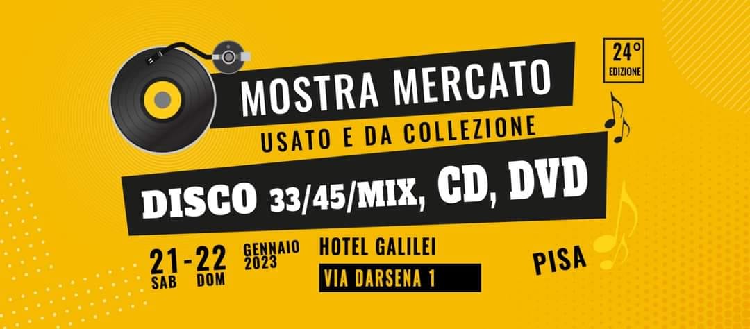 Sabato 21 e Domenica 22 gennaio 2023 dalle ore 10 alle ore 19.00: 24° Mostra del Disco! A Pisa presso l’ Hotel Galilei via Darsena n. 1 a Pisa. Ingresso 3,00 Euro – grande parcheggio gratuito