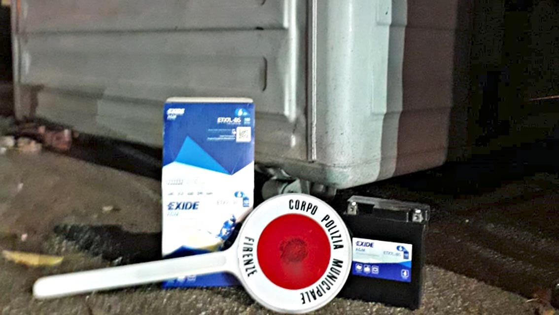 Firenze, voleva disfarsi di una batteria usata abbandonandola accanto a un cassonetto, ma è stata colta sul fatto dalla Polizia Municipale.