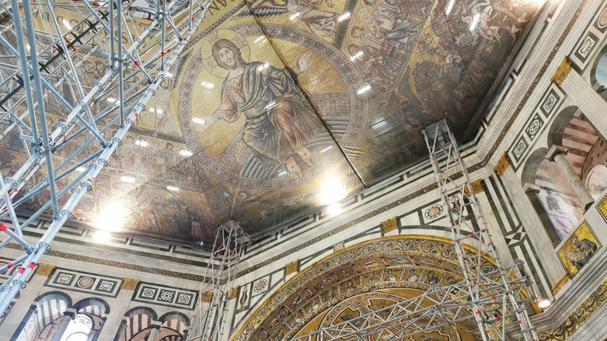 Al via, dopo oltre un secolo dall’ultimo intervento, il restauro degli oltre mille metri quadrati di mosaici policromi su fondo oro della cupola del Battistero di Firenze.