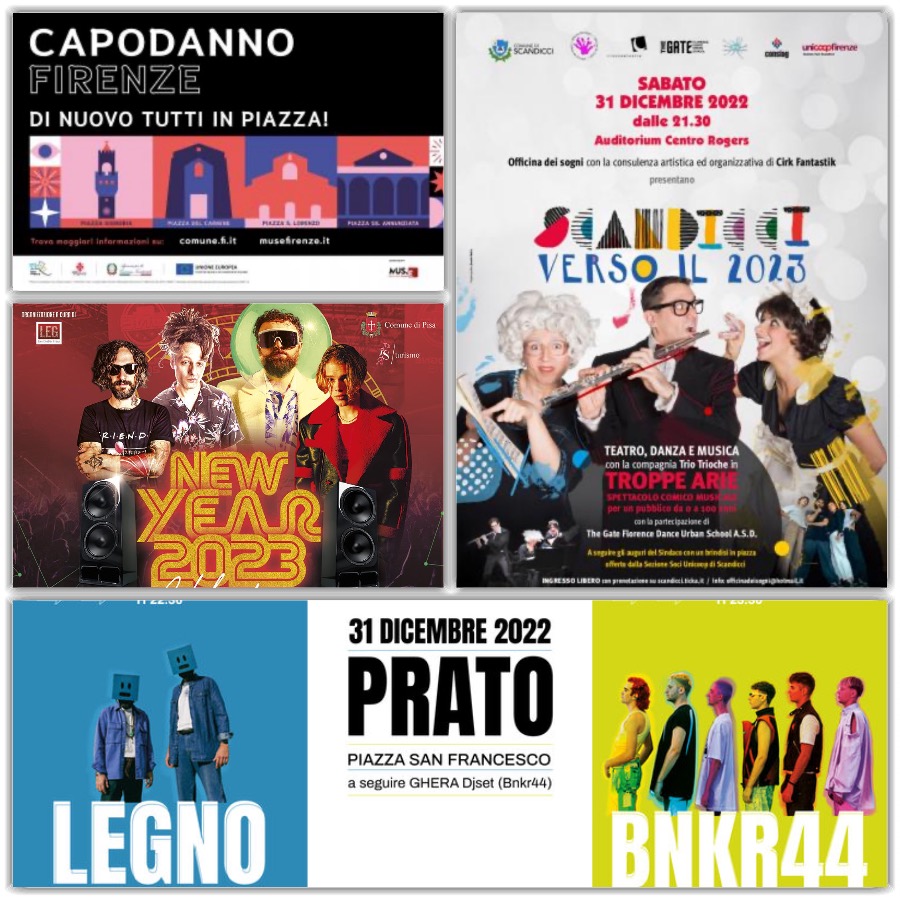 Dopo due anni di stop si torna a festeggiare l’arrivo del nuovo anno in piazza. Con concerti e spettacoli di intrattenimento. Ecco gli appuntamenti di Firenze, Scandicci, Prato e Pisa.