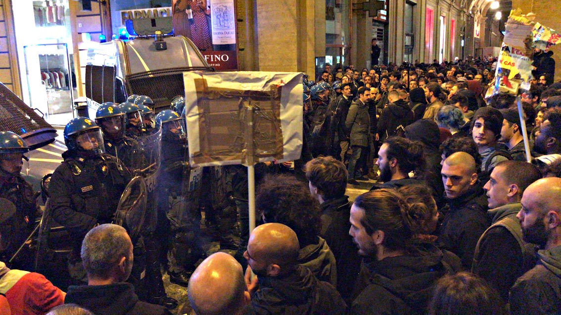 GiĂ molto prima che Salvini arrivasse sul palco in piazza Strozzi, dove c’erano non piĂą di un paio di centinaia di persone, la testa del corteo cercava di sfondare il cordone della polizia, sotto l’arco che da piazza della Repubblica porta in via Strozzi, ad un centinaio di metri dal palco della Lega, decisa la reazione della polizia che non esitava a partire con una serie di cariche cosiddette di alleggerimento, almeno una mezza dozzina, al termine delle quali si registrava qualche poliziotto contuso così come restava qualche contuso anche tra i manifestanti.