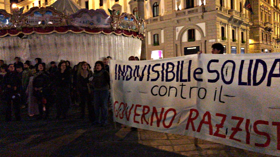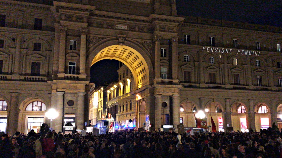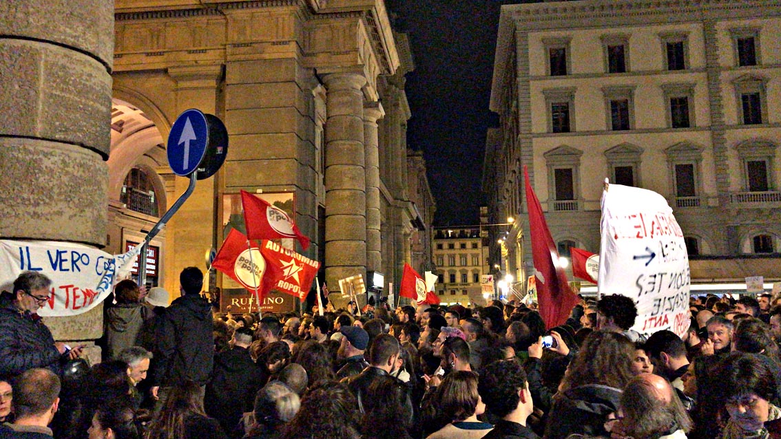 ?Firenze, circa 3000 persone in piazza della Repubblica per protestare contro la presenza del vicepremier e ministro dell’Interno Matteo Salvini, che ha tenuto un comizio in piazza Strozzi.