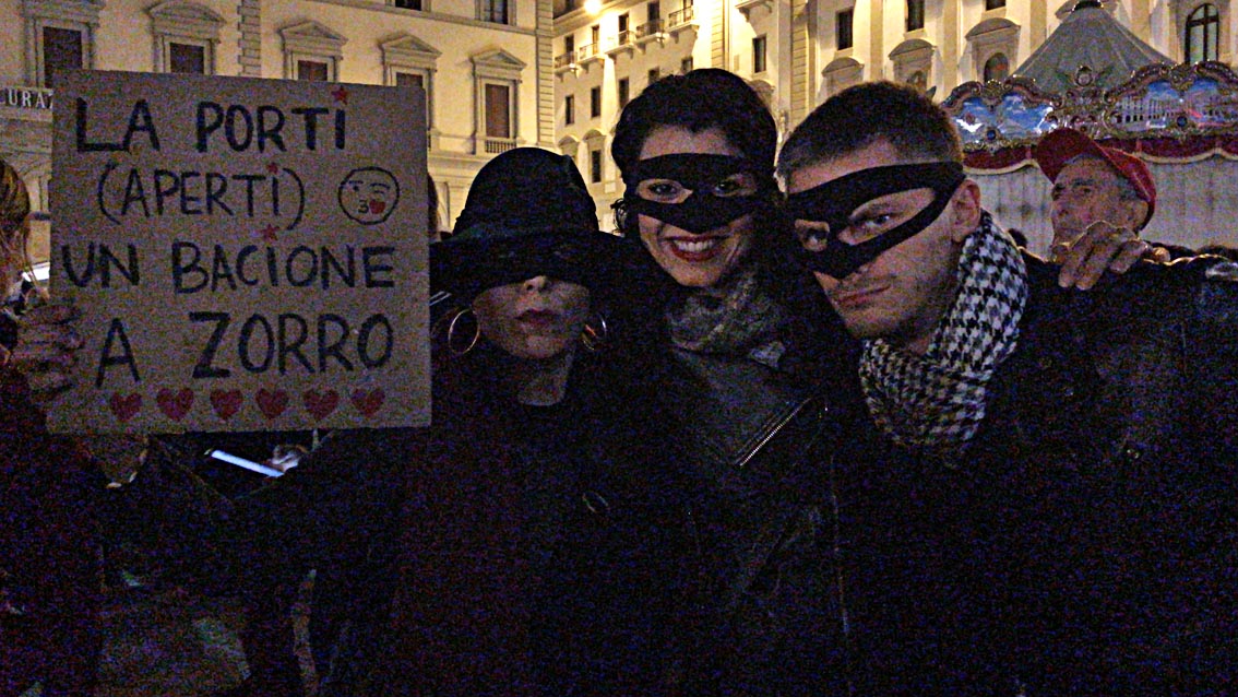 In realtĂ per la stragrande maggioranza la manifestazione era pacifica e molti manifestanti, portavano cartelli e striscioni anche ironici con alcuni che sono arrivati in piazza con la maschera di Zorro sul volto.