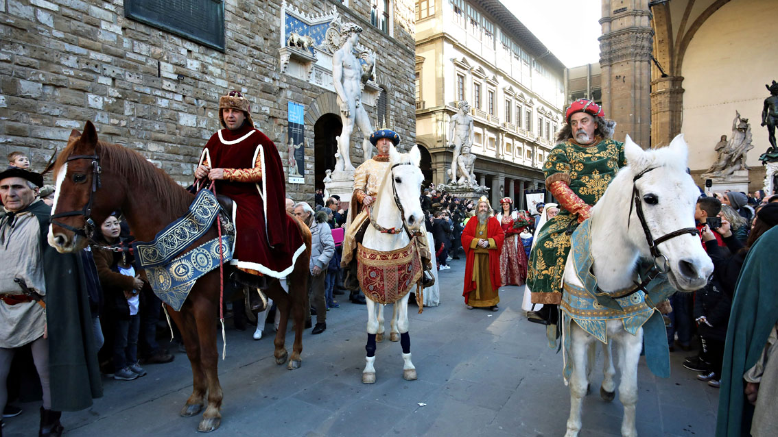 Dopo la partenza da Piazza Pitti, alle ore 14.00, il corteo si è snodato lungo le strade del centro fino ad arrivare in piazza Duomo alle ore 15.00, mentre il Coro delle Voci Bianche della Cappella della Cattedrale di Firenze, diretto dal Maestro Michele Manganelli, ha intrattenuto il pubblico con canti natalizi. Dopo l’arrivo di tutto il corteo in Piazza Duomo, il saluto dei figuranti e l’offerta dei doni dei Re Magi a Gesù Bambino nel Presepe vivente.