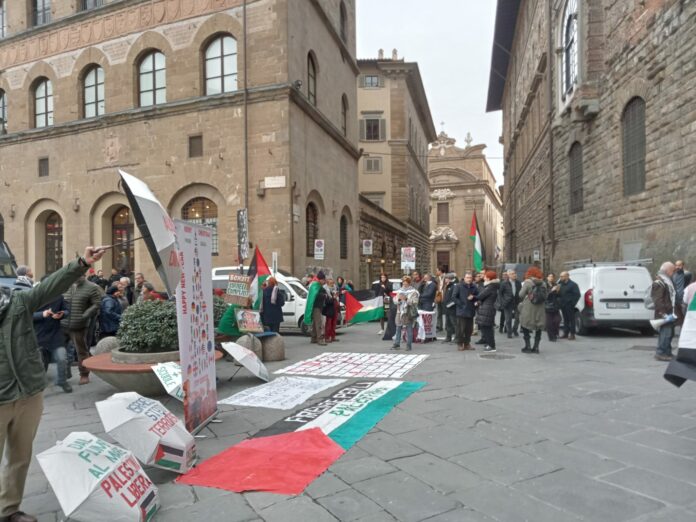 “La sindaca Funaro  ha dichiarato che Albanese è una figura divisiva. Invece noi pensiamo che divisivo sia mantenere Carrai alla presidenza della Fondazione Meyer. Il Comune deve impegnarsi nel rompere le relazioni con Israele e le aziende israeliane”. Lo ha dichiaratoEdoardo Todaro, uno degli organizzatori del presidio  di Firenze per la Palestina oggi sotto Palazzo Vecchio, mentre è in corso la seduta del Consiglio comunale, per “boicottare chi sostiene il genocidio in Palestina”. Sotto la sede del Comune circa 50 manifestanti.