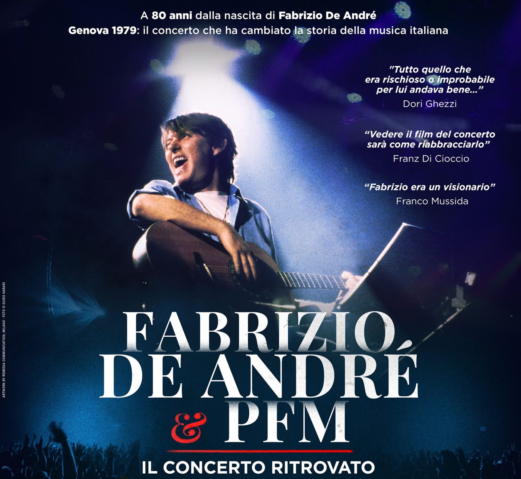 l film, per la regia di Walter Veltroni, ricostruisce quell’epoca indimenticabile che ha segnato un momento storico – l’irripetibile sodalizio artistico tra uno dei più grandi cantautori italiani di sempre e la rock band italiana più conosciuta al mondo– partendo soprattutto dalla ritrovata registrazione video completa del concerto di Genova del 3 gennaio 1979, un documento veramente straordinario visto che si tratta delle uniche immagini di quell’incredibile tournée. “Strana la vita, non finisce mai di riservarti sorprese – commenta Dori Ghezzi – Per fortuna, come in questo caso, si tratta di una sorpresa davvero bella. Sono anch’io molto curiosa ed emozionata di rivedere quello storico concerto. Se ci penso mi sento già riproiettata in quei momenti travolgentemente belli, di 40 anni fa”. E Franz Di Cioccio della PFM aggiunge “Che bello ritrovare Fabrizio sul palco con noi… vedere il film del concerto sarà come riabbracciarlo. Un grande amico che ha sempre raccontato gli uomini e le donne senza dare ‘buoni consigli’.” Il filmato restaurato del concerto è il fulcro del docufilm; le immagini sono raccontate dai protagonisti di quell’avventura straordinaria – Dori Ghezzi, Franz Di Cioccio, Patrick Djivas, Franco Mussida, Flavio Premoli, David Riondino, Piero Frattari, Guido Harari – che rievocheranno l’atmosfera di quel giorno, le emozioni provate, il dietro le quinte e la magia di un’esperienza mai più replicata.