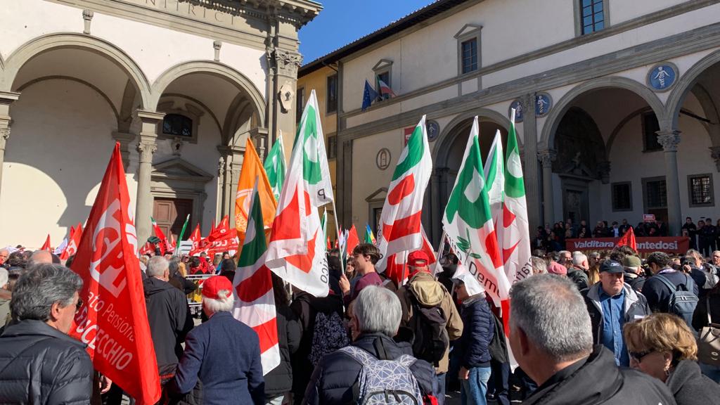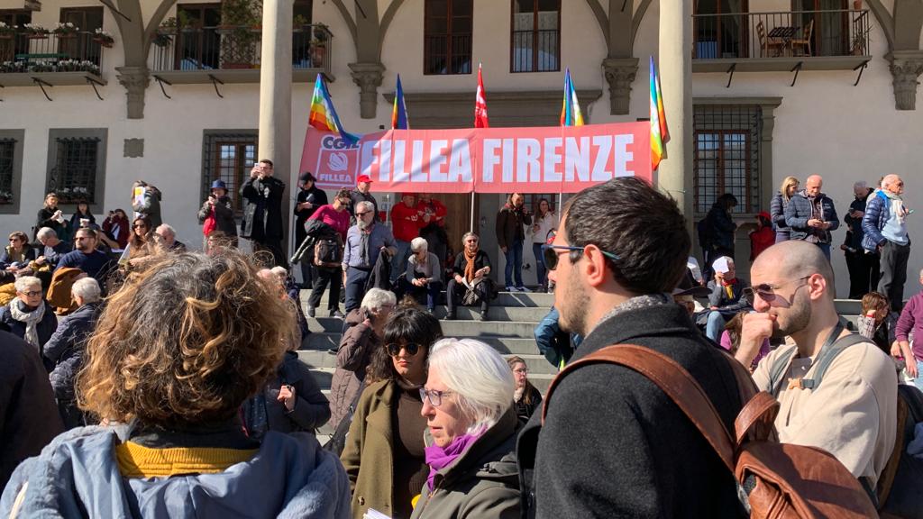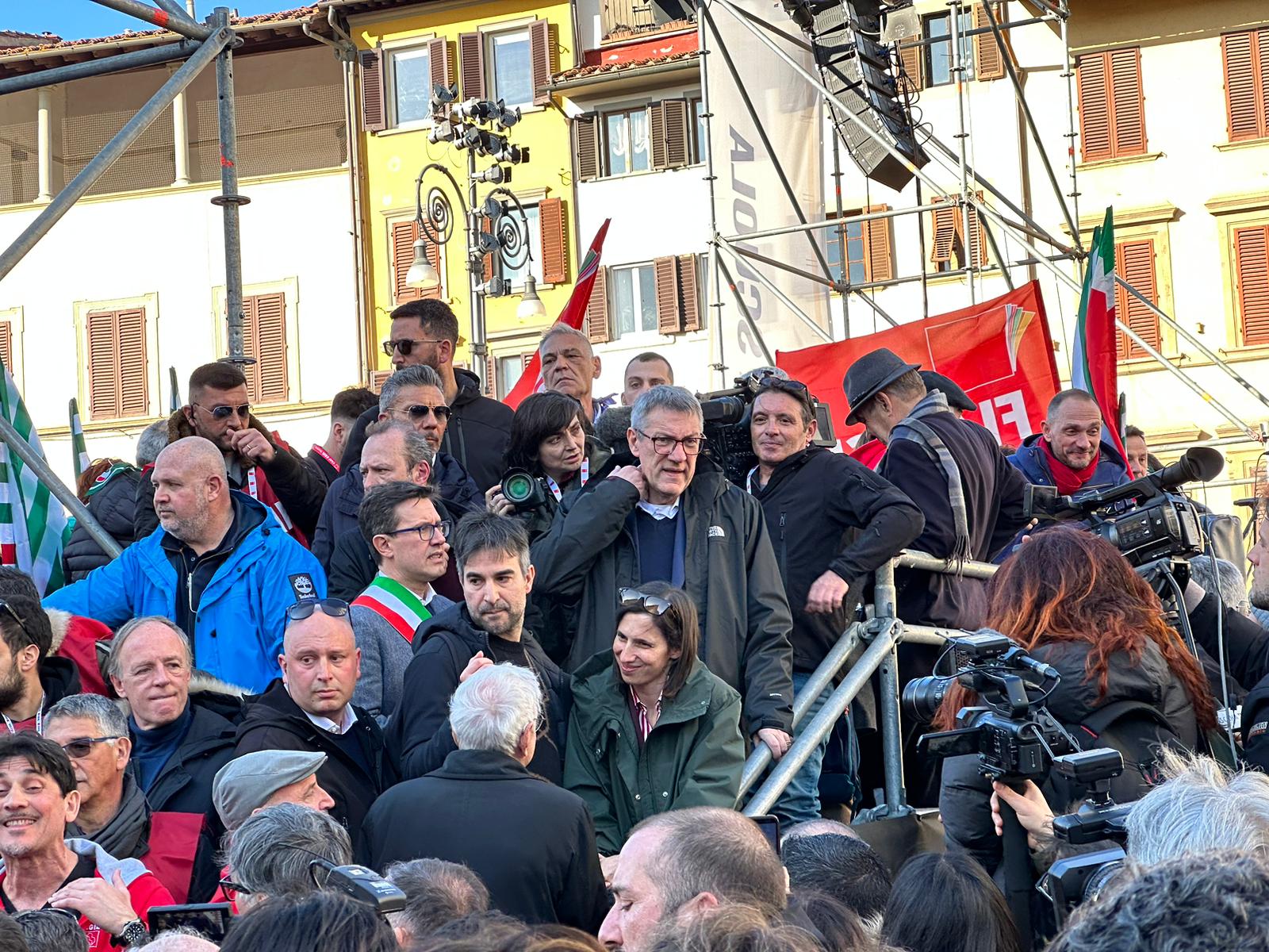 Insieme al corteo la segretaria del Pd Elly Schlein e il segretario della Cgil Maurizio Landini. Durante la manifestazione Schlein si è fermata sul lungarno della Zecca Vecchia in attesa dell’arrivo di Landini: insieme al sindaco Dario Nardella stanno percorrendo la parte finale del corteo che si concluderà in piazza Santa Croce.
