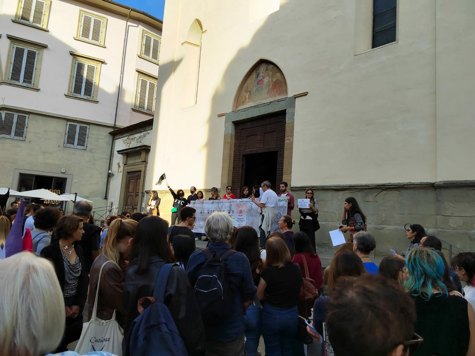 Sul sagrato i cartelli gialli dell’a ONG con la richiesta di giustizia e la proclamazione di supporto alla protesta degli iraniani. Dal 30 settembre ad oggi, secondo i dati della Ong ‘Iran Human Rights’, aggiornati al 5 ottobre, avrebbero perso la vita almeno 154 persone di cui 9 minorenni e migliaia sarebbero state le persone arrestate.