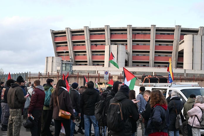 Il presidio si sta svolgendo senza tensioni e sono stati appesi striscioni con scritto ‘Stop genocide’, ‘Palestina libera’, ‘Fermiamo il sionismo con la Resistenza’, mentre si susseguono gli interventi di alcuni manifestanti utilizzando un megafono. Al Salahat, dipendente della Associazione benefica di solidarietà col popolo palestinese, secondo gli inquirenti sarebbe un componente della cellula italiana di Hamas.
