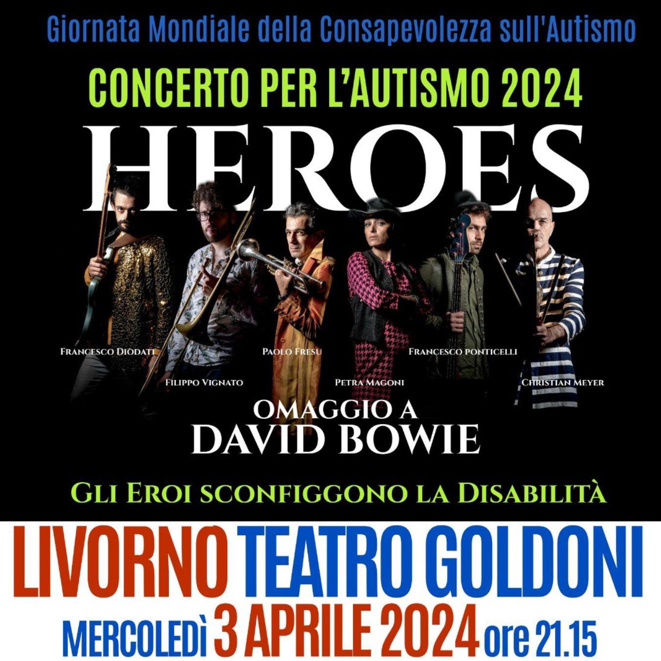 Cosa unisce David Bowie Livorno e l’Autismo? Voler essere eroi almeno per un giorno! Gli Eroi sconfiggono la disabilità insieme sul palco per dare voce a chi voce non ha. Appello delle Associazioni a sostenere i percorsi di vita e di inclusione. Teatro Goldoni Livorno mercoledì 3 aprile ore 21.15 con Paolo Fresu, Petra Magoni, Filippo Vignato, Francesco Diodati, Francesco Ponticelli Christian Meyer