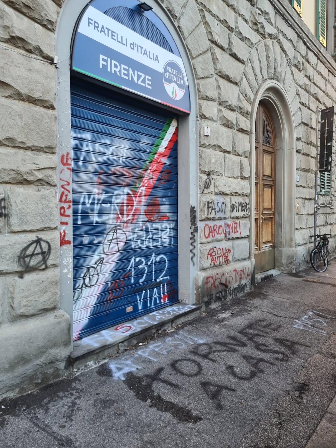 Imbrattata la notte scorsa la sede di Fdi a Firenze, in piazza Oberdan.