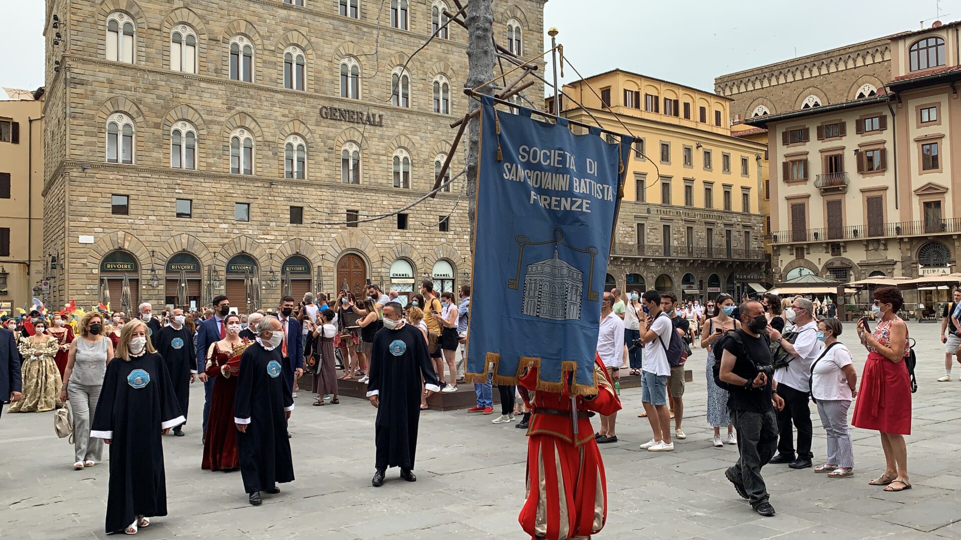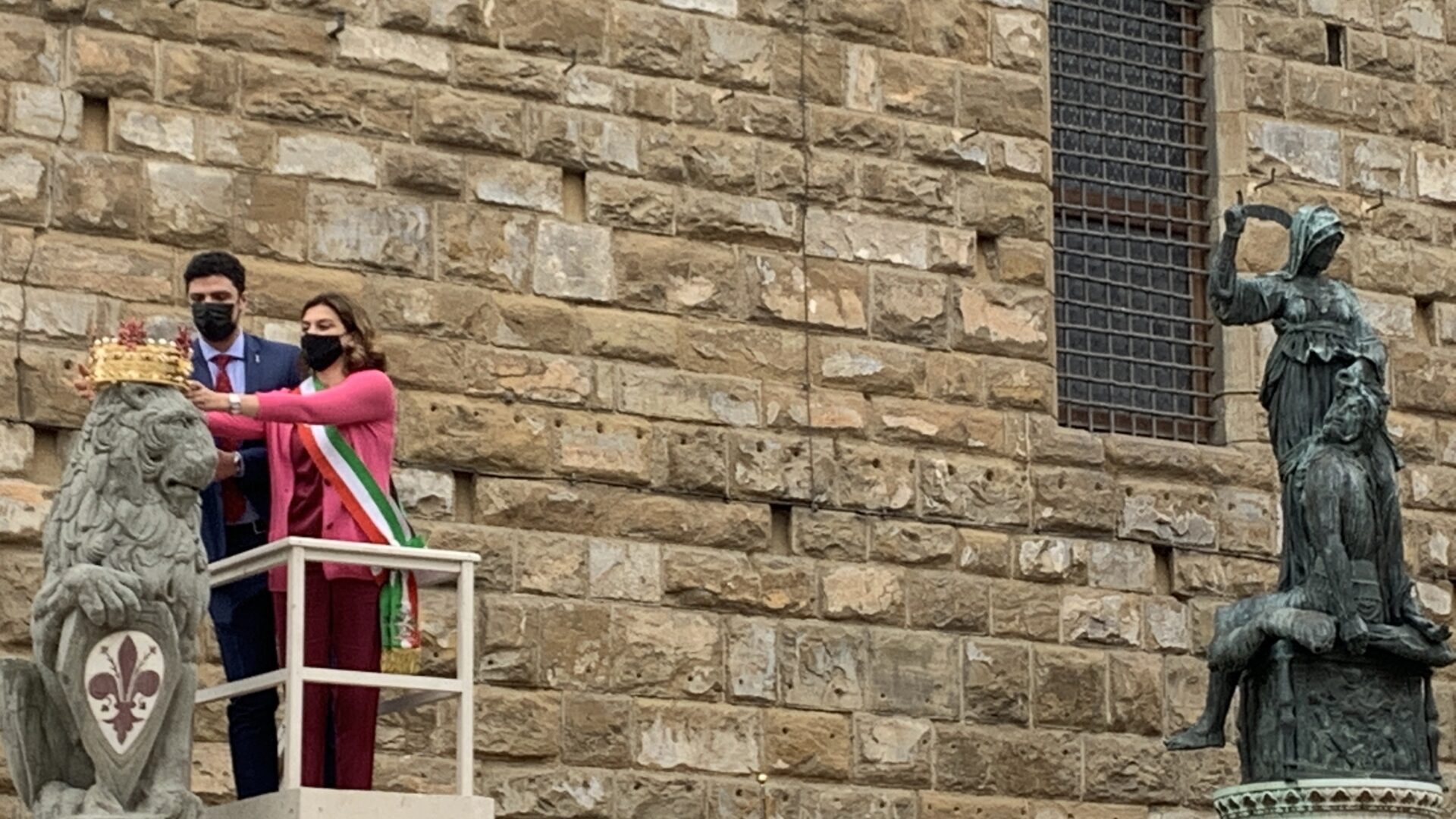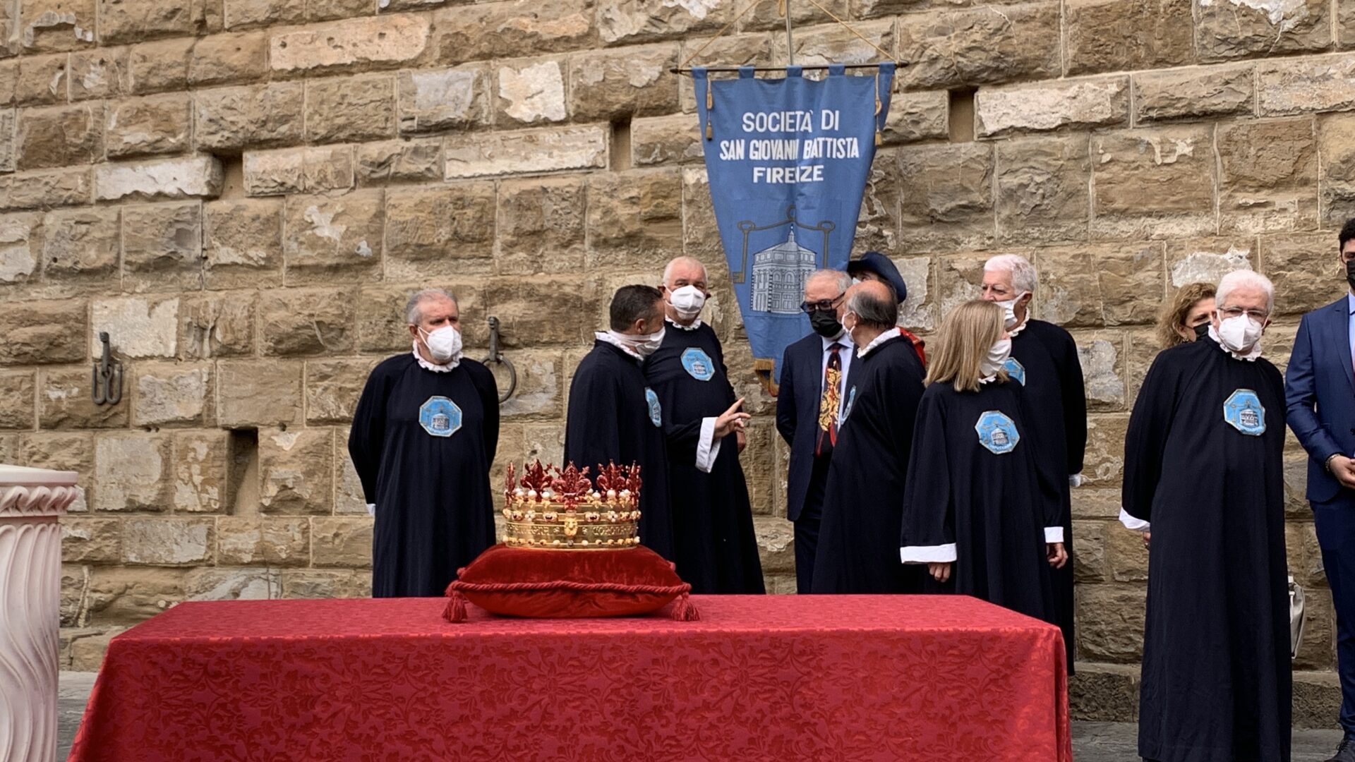 Firenze, Palazzo Vecchio, la Società San Giovanni Battista di Firenze, il Corteo Storico della Repubblica Fiorentina e del Calcio Storico Fiorentino e il maestro orafo Paolo Penko, hanno fatto rivivere alle 11:00 di domenica mattina, l’antica tradizione fiorentina dell’incoronazione del Marzocco che storicamente, viene appunto celebrata quattro giorni prima della ricorrenza della festa del patrono della città, San Giovanni, del 24 di giugno, con la deposizione di una corona sulla testa del leone che è uno dei simboli di Firenze..