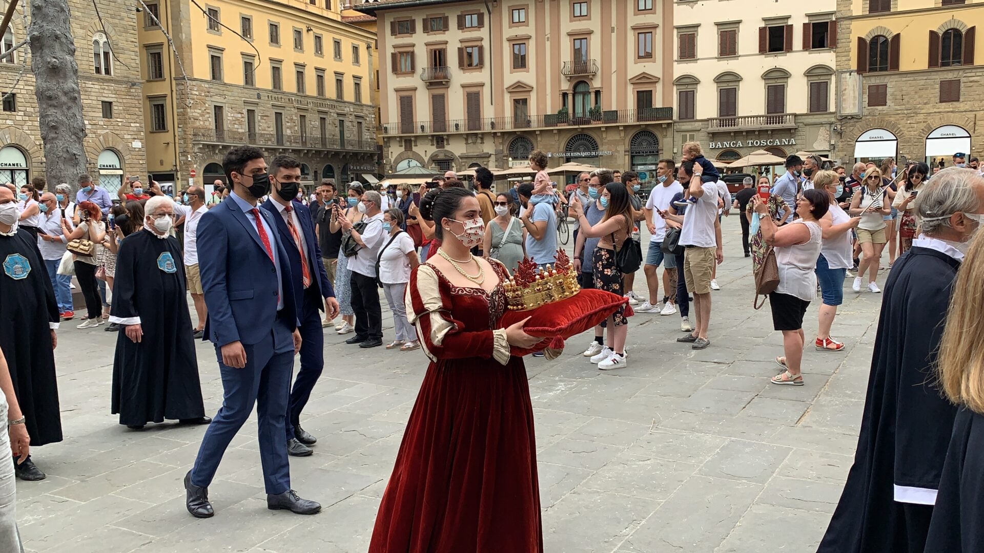 L’incoronazione del Marzocco è una cerimonia di grande impatto simbolico e spettacolare, grazie anche al contributo del Corteo Storico della Repubblica Fiorentina, schierato per l’occasione in piazza della Signoria.