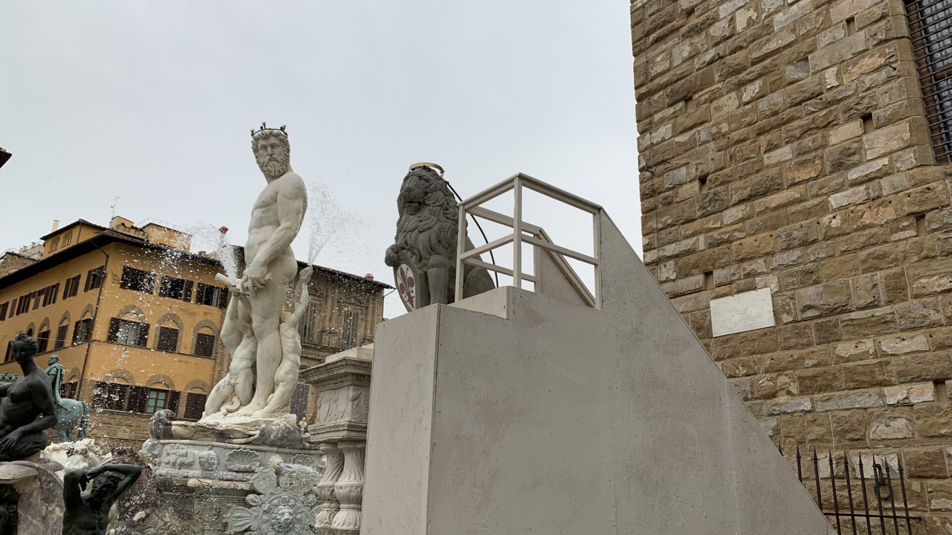 La copia oggi presente è stata restaurata nel 2016 su iniziativa degli sbandieratori del Calcio Storico Fiorentino e del Corteo Storico della Repubblica Fiorentina.