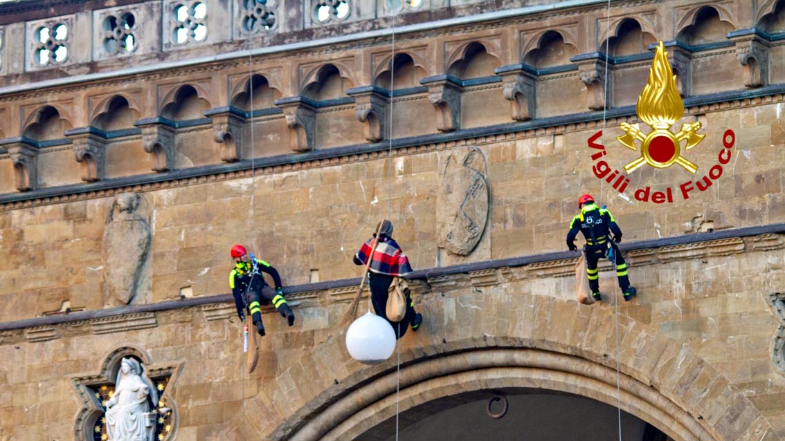 La Befana dei Vigili del Fuoco scende dalla Loggia dei Lanzi