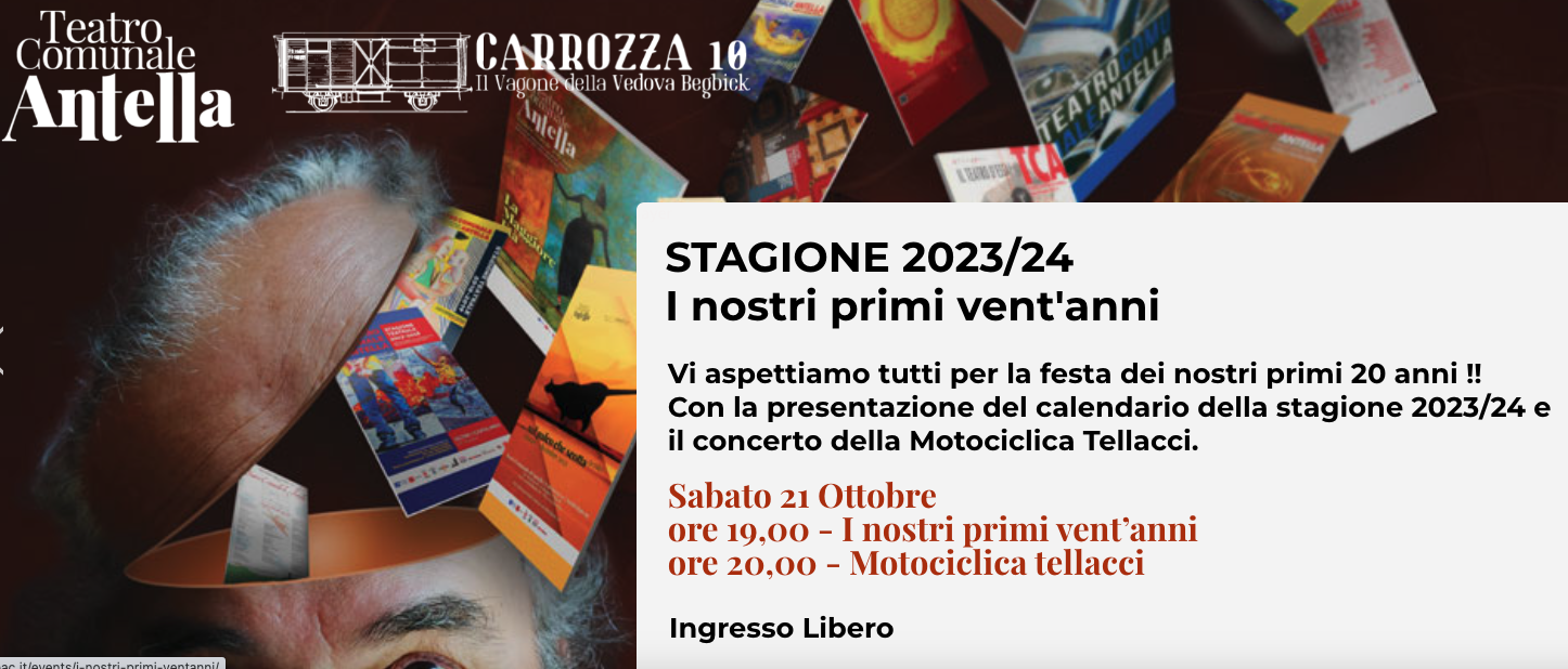 Da sabato 21 ottobre alle ore 19:00 si inaugura la nuova stagione con la mostra “I nostri primi vent’anni”, la direzione artistica punta su una stagione ricca di generi, spettacoli internazionali, come “Il nutrimento delle mosche”, del noto drammaturgo spagnolo Eusebio Calonge, e produzioni originali. L’intervista a Così Riccardo Massai, fondatore dell’associazione Archetipo e direttore artistico del Teatro Comunale di Antella.