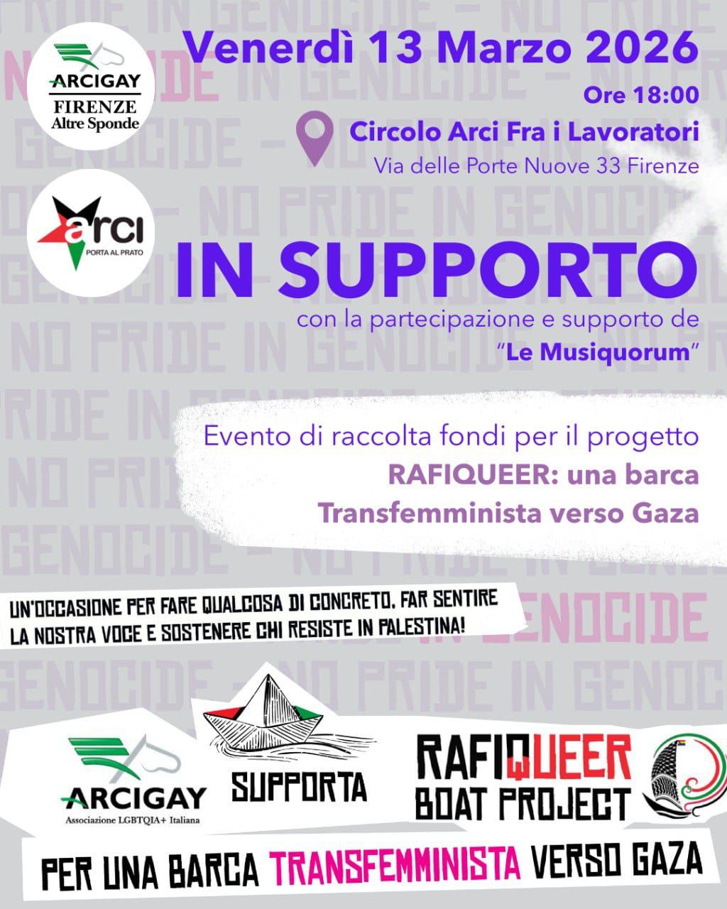 Un evento per raccogliere fondi per supportare il viaggio della Rafiqueer boat verso Gaza. Mancano 50 giorni per raggiungere i 35mila euro necessari a far salpare la prima imbarcazione queer e transfemminista* per la solidarietà al popolo palestinese. Una barca queer si unirà al viaggio della prossima flottiglia, le Thousand Madleens, che a primavera salperà per le coste dei Territori Occupati: una nuova traversata che vuole unire resistenze, lotte transfemministe e solidarietà internazionale.