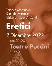 Questa sera al Teatro Puccini di Firenze alle ore 21.00, lo spettacolo “Eretici” di Tomaso Montanari, con Daniela Morozzi, attrice di teatro, cinema e televisione e Stefano ‘Cocco’ Cantini, sassofonista noto a livello internazionale.