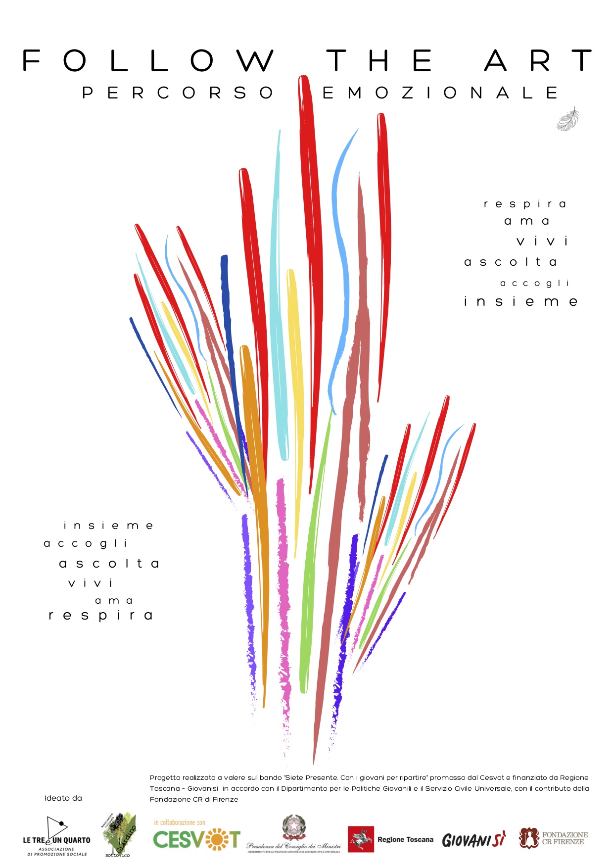 Il 17 dicembre 2022 alle ore 11 l’Associazione Le Tre e un quarto aps, vincitrice del bando “Siete Presente” indetto da Cesvot in collaborazione con la Regione Toscana nell’ambito di Giovanisì, inaugurerà la conclusione dei lavori del percorso emozionale “Follow of the art”.