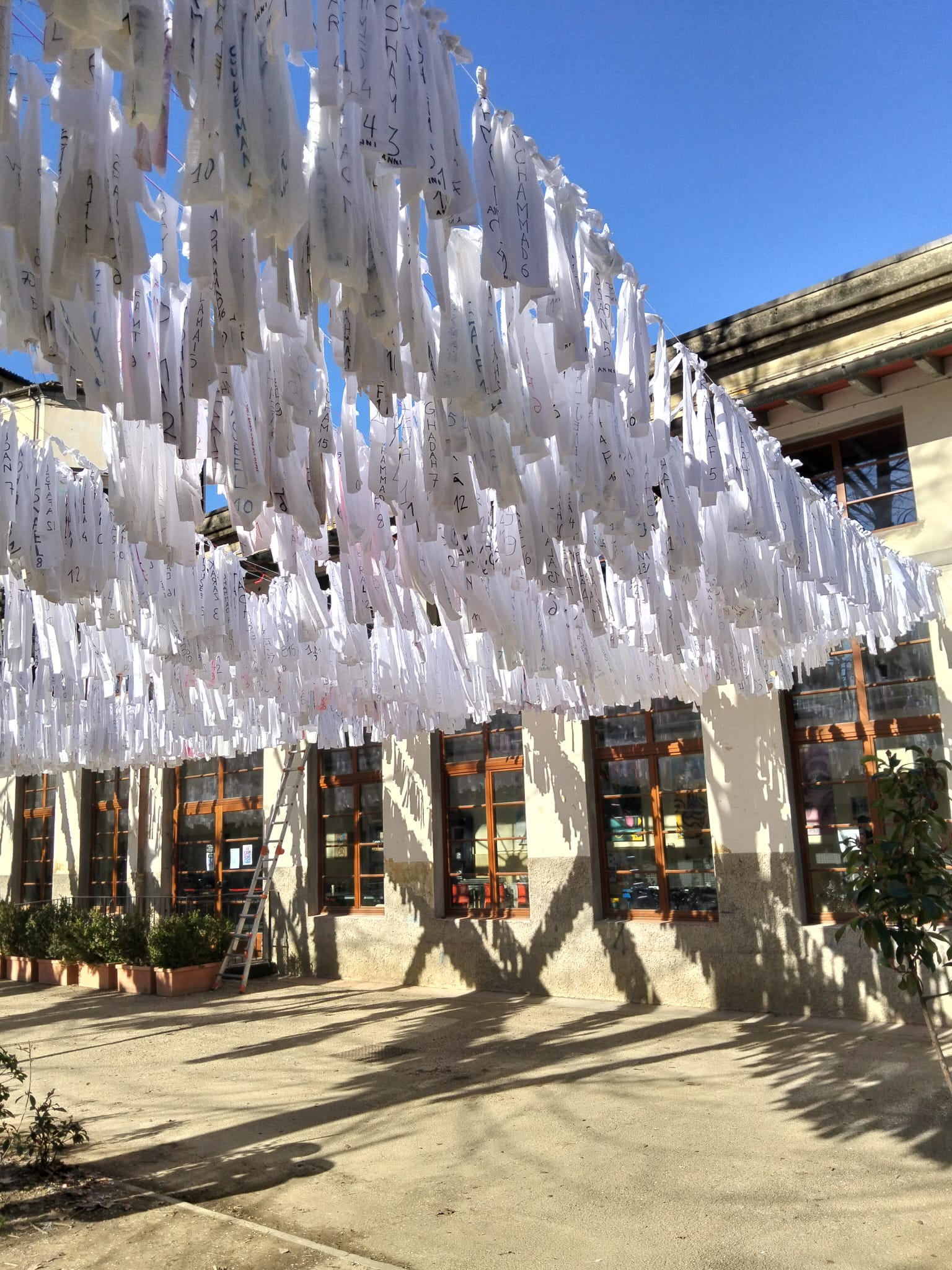 Sono 19.104 strisce con l’età e i nomi dei bambini e le bambine che sono stati uccisi a Gaza. Gli alunni della scuola media Machiavelli hanno partecipato così come quelli di altre scuole del quartiere con genitori, nonni e conoscenti. Un vero inno alla pace e un modo per commemorare le piccole vittime in un giardino vissuto dai bambini e un modo per provare a difendere la vita e i sogni di tutti i bambini del mondo.