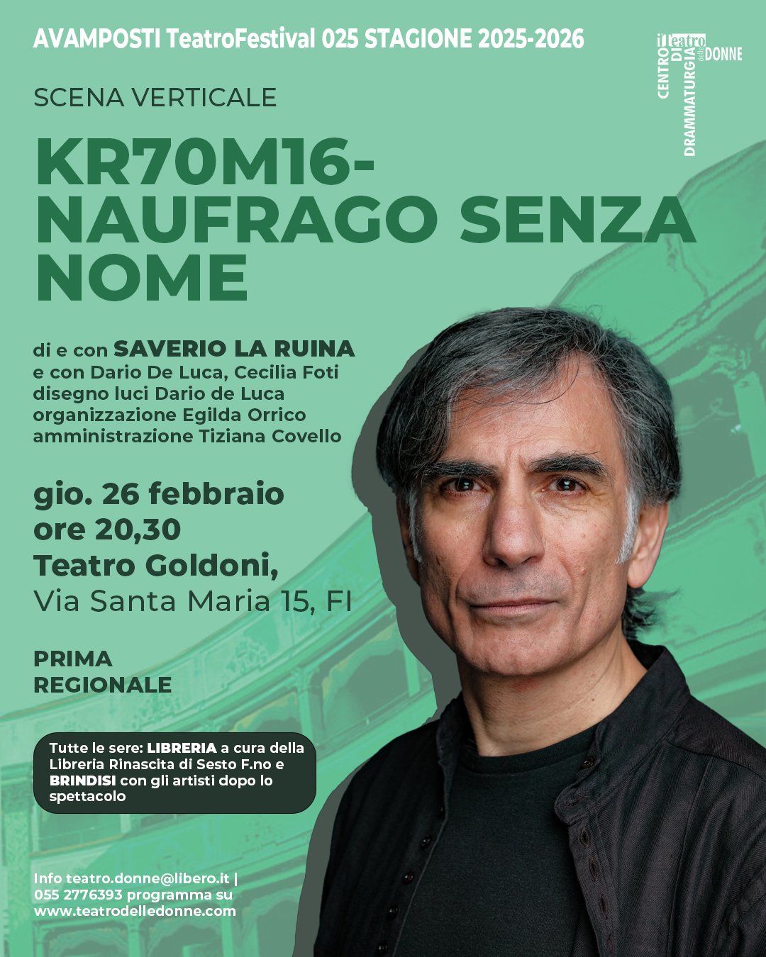 Giovedì 26 marzo ore 20:30 Teatro Goldoni, Via S Maria 15 a Firenze.