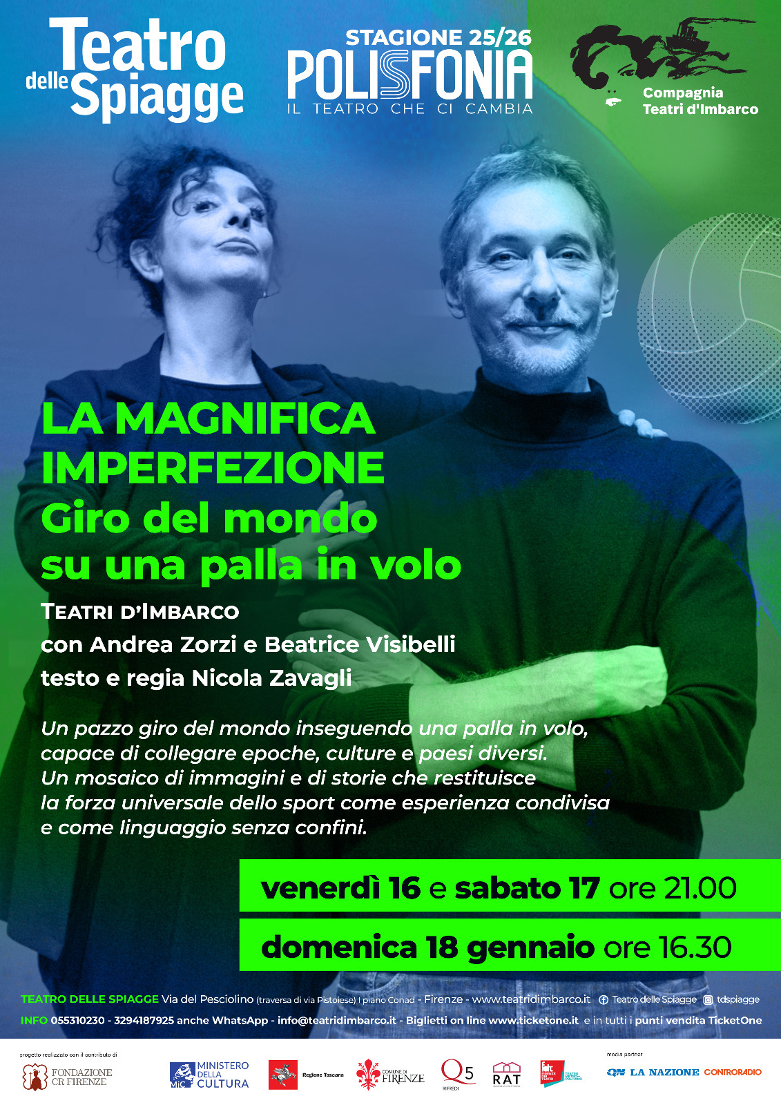 Un funambolico viaggio nel mondo dello sport e, in particolare, della pallavolo, che attraversa idealmente cinque continenti e accompagna lo spettatore lungo il corso del Novecento. Sul palcoscenico, Andrea Zorzi – fuoriclasse della pallavolo mondiale – e l’irresistibile Beatrice Visibelli guidano un pazzo giro del mondo inseguendo una palla in volo, capace di collegare epoche, culture e paesi diversi.