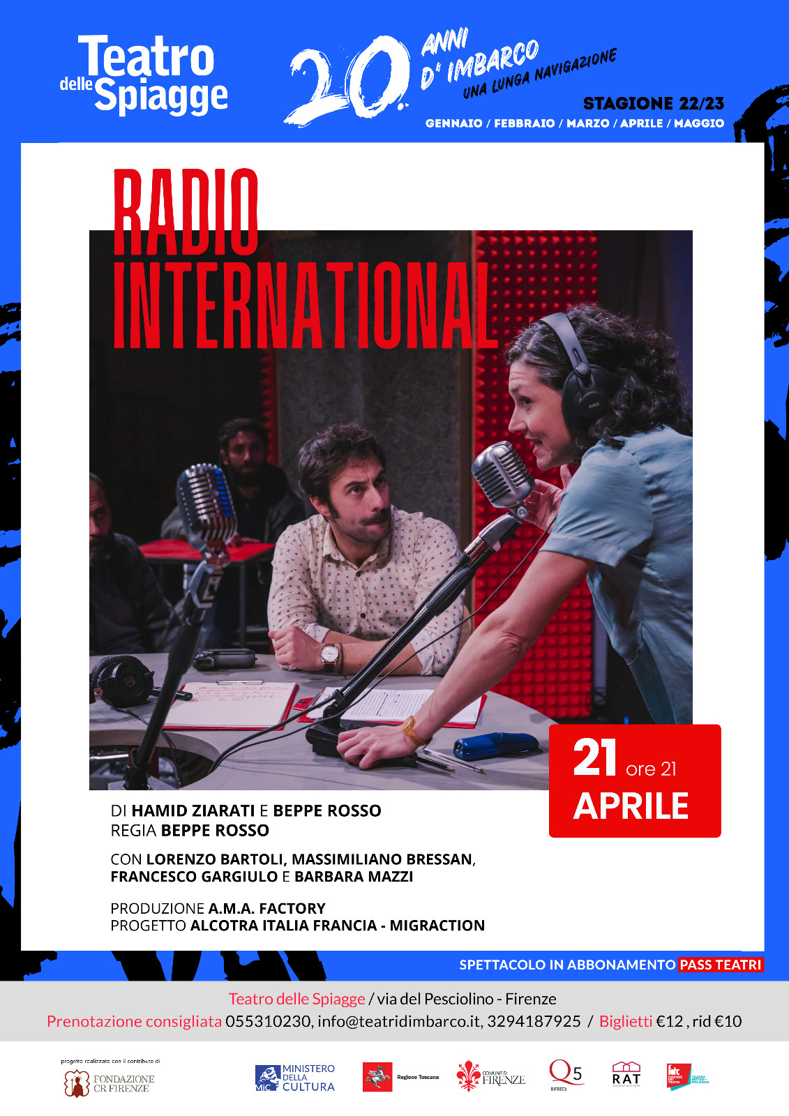 VenerdƬ 21 aprile alle 21 al Teatro delle Spiagge di Firenze, ACTI Teatri Indipendenti presenta: “Radio International”. DiĀ Hamid Ziarati, regiaĀ Beppe Rosso.