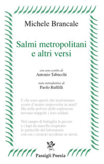 E’ appena uscita per Passigli una nuova edizione dei ‘Salmi metropolitani’ di Michele Brancale che furono salutati alla loro uscita nel 2009 da Antonio Tabucchi come espressione di una voce altra, che «per chi riesce a sentirla ha un codice sonoro di altissima intensità ma che non è udibile da nessun altro perché non viene da fuori, viene da dentro». È la voce della poesia che «non appartiene alla geometria con cui dobbiamo misurare il reale, viaggia su frequenze diverse, attraversa l’opacità di ciò che chiamiamo “evidenza” aprendo fessure in tutto ciò che ci circonda, introducendo un altro senso».