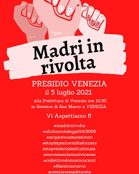 “Madri in rivolta”, fino al 12 luglio “Porteremo una lettera al Prefetto. Dove chiediamo che finiscano i prelievi coatti dei bambini. Che vengano riportati a casa quelli prelevati! E che venga modificato almeno il primo articolo della legge 54/2006”