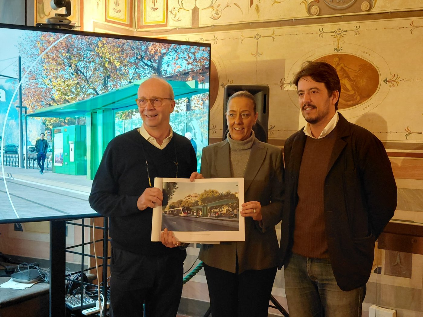 Il progetto originario, a seguito di un primo confronto con la Soprintendenza, aveva previsto l’eliminazione completa delle sei pensiline sull’intero tratto dei viali, analogamente a quanto già avvenuto nel centro storico per le altre linee tramviarie.