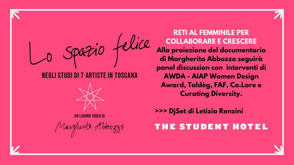 The Student Hotel Firenze Lavagnini ospiterà la proiezione del lavoro video dell’artista Margherita Abbozzo. Presentato per la prima volta nell’ambito del festival L’Eredità delle Donne, “Lo Spazio Felice” racconta 7 incontri con 7 artiste di generazioni diverse che lavorano oggi in Toscana.