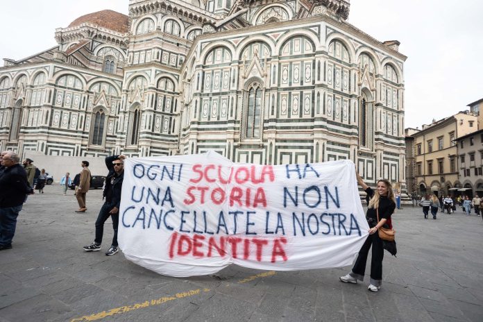 Un centinaio di manifestanti tra personale scolastico, rappresentanti delle istituzioni e famiglie, compresi giovani e giovanissimi studenti, ha dato vita oggi in piazza Duomo a Firenze a un presidio di protesta contro il piano nazionale di dimensionamento scolastico, che in Toscana provocherebbe l’accorpamento con altre scuole, fra le tante, del liceo classico Michelangiolo di Firenze e dell’Istituto Comprensivo Capraia e Limite.