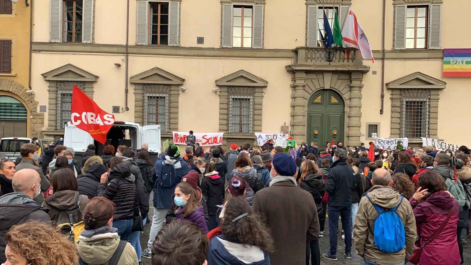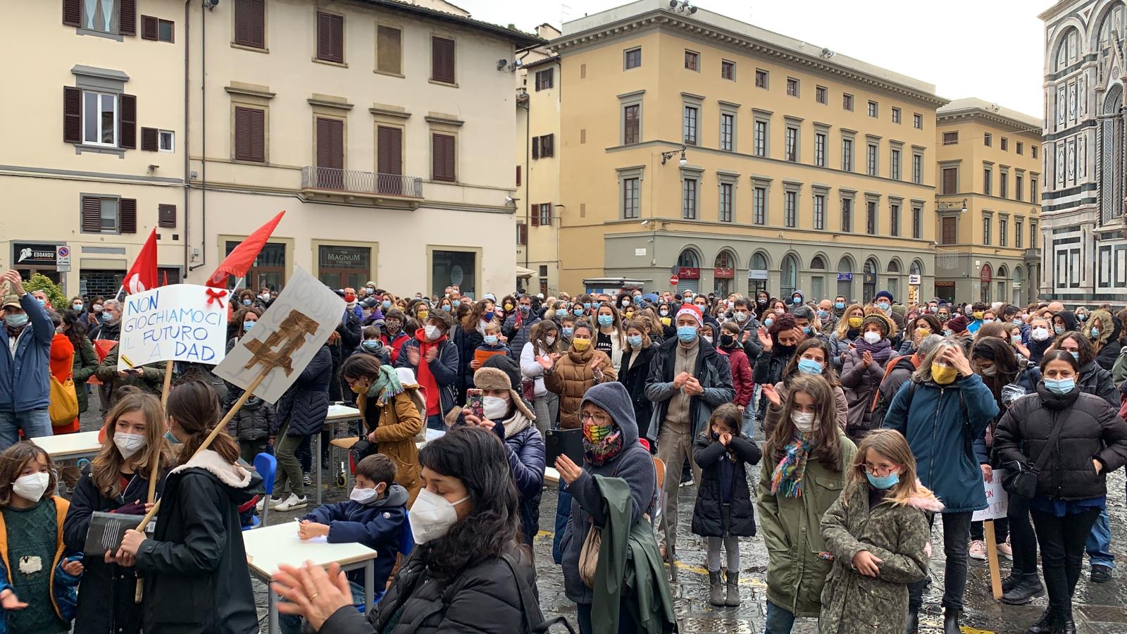 🔈Firenze, circa cinquecento persone, fra cui molti docenti e studenti, hanno partecipato oggi a Firenze al flashmob organizzato dal comitato ‘Priorità alla Scuola’, in piazza Duomo davanti alla sede della Regione Toscana, per chiedere il ritorno alla didattica in presenza.