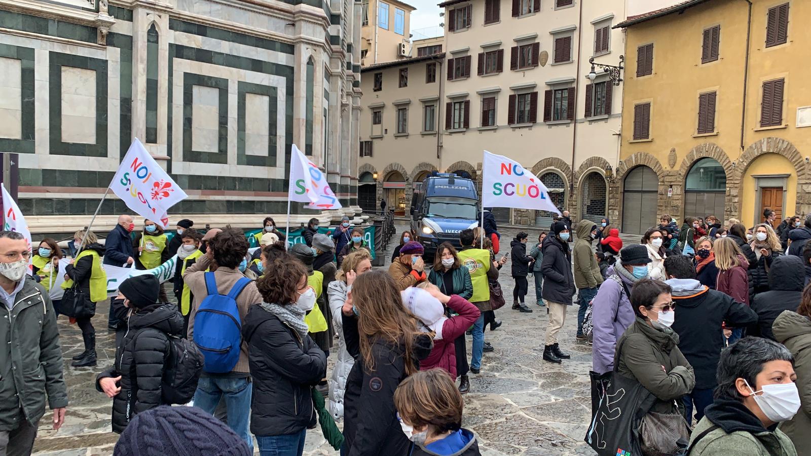 🔈Firenze, circa cinquecento persone, fra cui molti docenti e studenti, hanno partecipato oggi a Firenze al flashmob organizzato dal comitato ‘Priorità alla Scuola’, in piazza Duomo davanti alla sede della Regione Toscana, per chiedere il ritorno alla didattica in presenza.