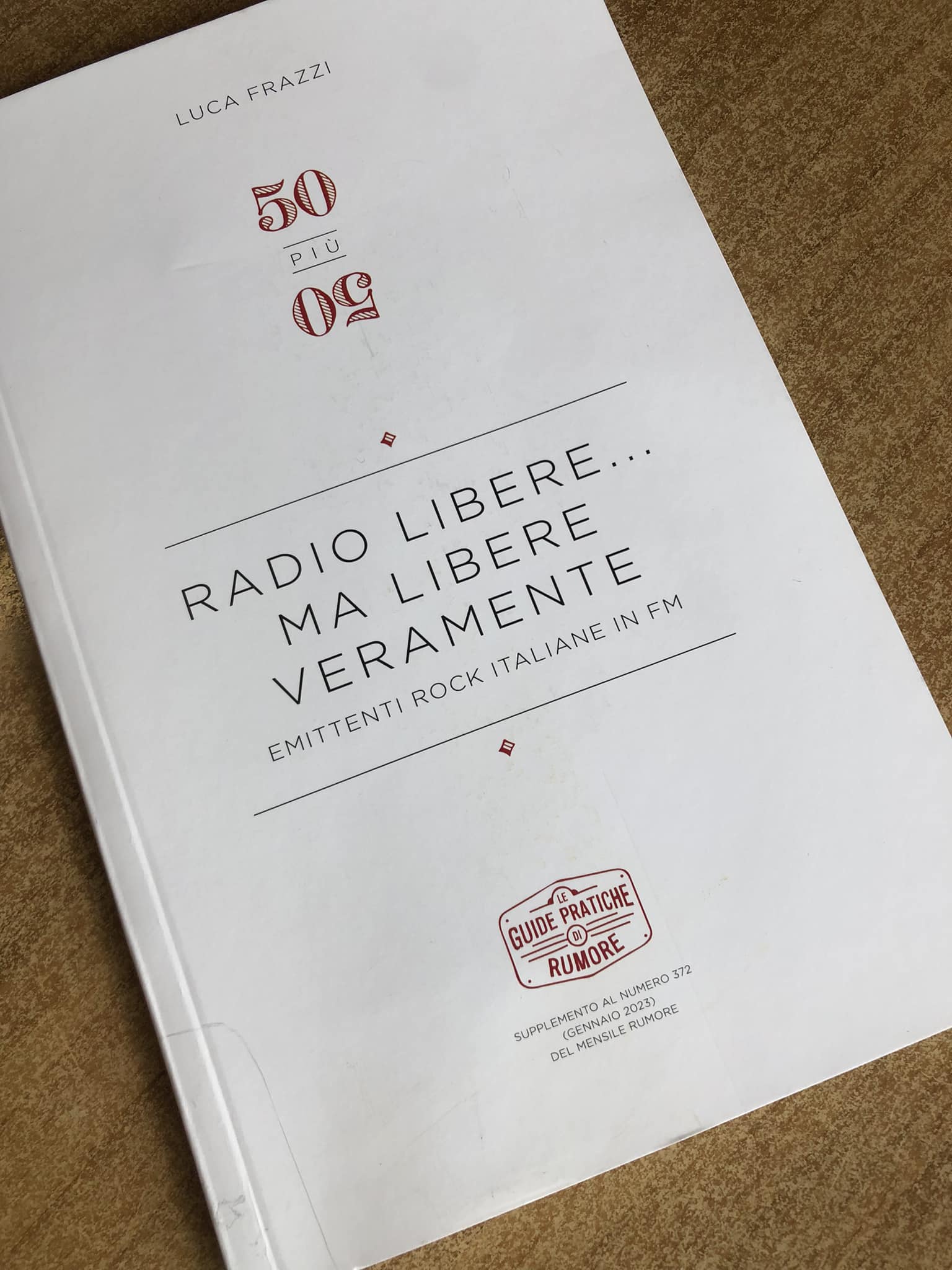 50 + 50 Radio Libere… Ma Libere Veramente (Emittenti Rock Italiane in FM) è il nuovo volume a firma Luca Frazzi in allegato con il numero di gennaio di Rumore. Frazzi questa volta si dedica alle radio private e/o indipendenti che hanno animato l’etere nazionale dalla loro nascita a oggi. Una piccola grande storia dell’altra Italia in modulazione di frequenza, dal Friuli alla Sicilia, che ripercorre mezzo secolo di vicende radiofoniche. Spesso pionieristiche e avventurose, figlie di un’epoca in cui la musica passava solo attraverso pochi e limitati canali (ma non per questo meno affascinanti, anzi). 100 schede dettagliate per altrettante emittenti di area rock, introduzione a cura dello stesso Frazzi. Le tre postfazioni, invece, sono firmate da leggende come Eugenio Finardi, Luca De Gennaro e Arturo Compagnoni.